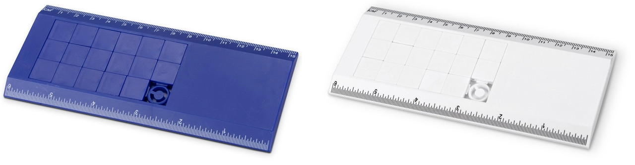 Кто сказал, что логику и мелкую моторику можно развивать только детям? Пару-тройку минут свободного времени в офисе можно посвятить знакомой всем с детства забаве – игре в "пятнашки". Игра расположена на линейке, так что это еще и нужная канцелярская принадлежность. Цвета в ассортименте.
