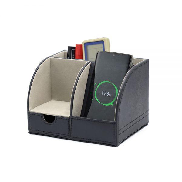 Органайзер “Форма” имеет встроенную беспроводную зарядку, что выгодно отличает его от аналогов. Данная модель имеет качественно покрытие из кожзама и много отделений для офисных мелочей.